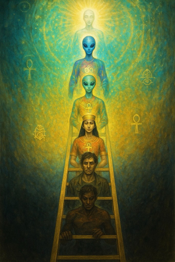 Ik heb hoog bewustzijn, ik heb laag bewustzijn. Mijn hoge bewustzijn vindt het geen enkel probleem dat ik ook laag bewustzijn heb. Het gedeelte van mij wat zich superieur voelt door het hoge bewustzijn is juist afkomstig uit de lagere bewustzijnslagen van mijzelf. Met andere woorden, het hoge bewustzijn ziet zichzelf als het totaal van bewustzijnslagen, terwijl het lagere bewustzijn, wat leeft in afgescheidenheid, zich graag identificeert met de favoriete aspecten van het zelf en de rest buiten zichzelf projecteert. Het lagere bewustzijn ziet een wereld vol onbewuste mensen, het hogere bewustzijn ziet een wereld gevuld met alle aspecten van zichzelf.